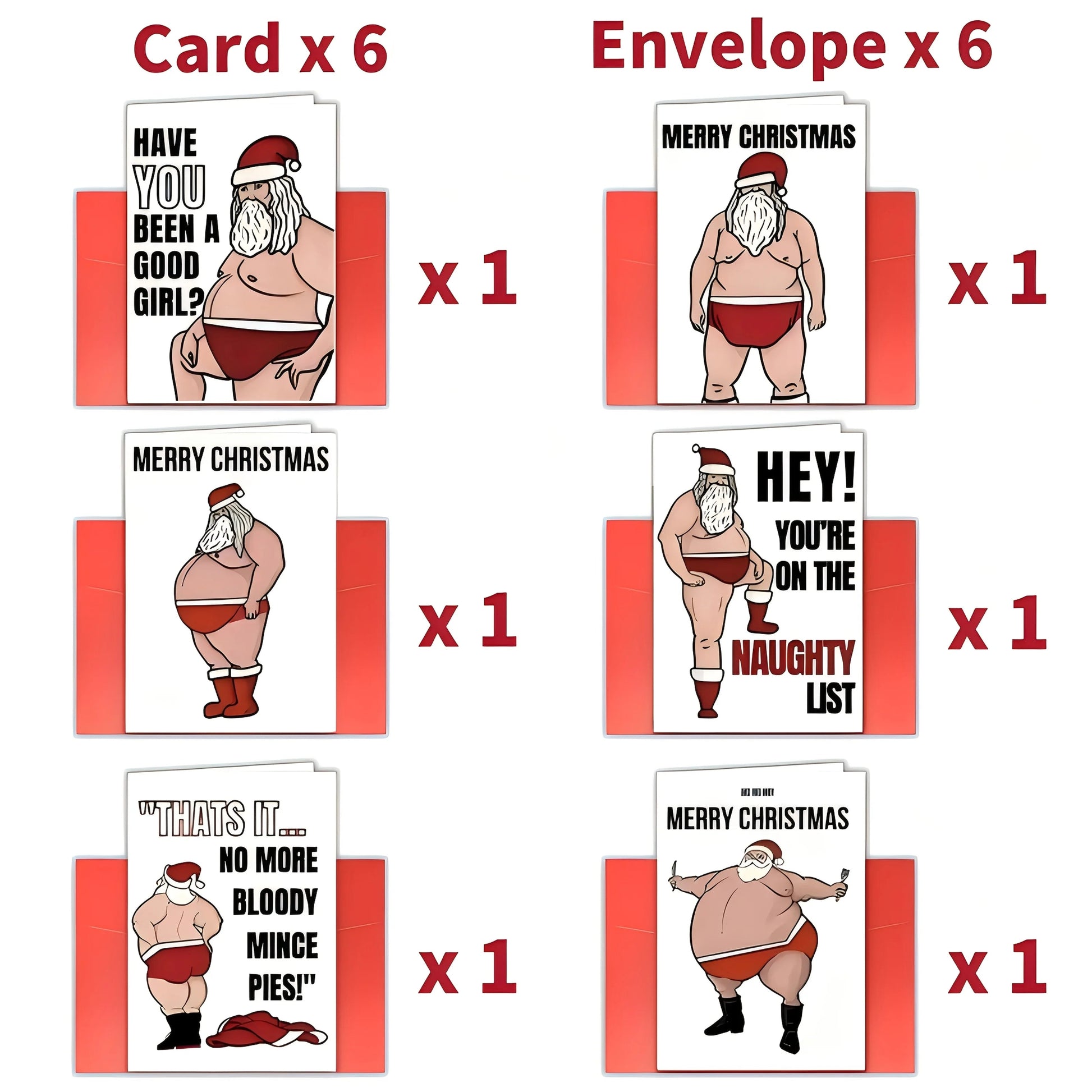 Ajoutez une bonne dose dâhumour Ă vos fĂȘtes avec ce pack de 6 cartes hilarantes, featuring un PĂšre NoĂ«l complĂštement dĂ©calĂ© et sans filtre ! Avec 6 designs diffĂ©rents, ces cartes sont parfaites pour envoyer des vĆux piquants, fun et rĂ©solument adultes.