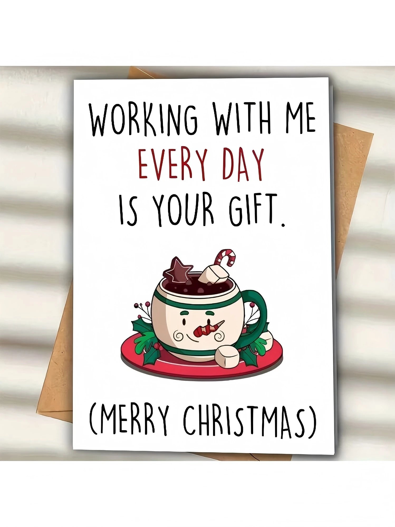 La carte idéale pour envoyer un message de Noël plein d’humour… surtout à vos collègues ! Avec son ton faussement modeste et son illustration adorable d’un chocolat chaud festif, cette carte est parfaite pour taquiner vos partenaires de bureau tout en restant dans l’esprit de Noël.